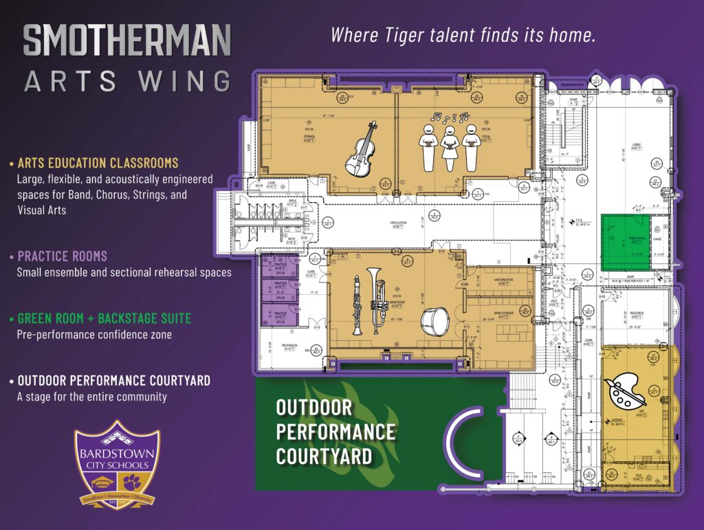 Once complete, the Smotherman Arts Wing will provide Bardstown City Schools with a dedicated, functional space that supports a full range of arts programming and reflects the district’s long-term commitment to student learning.